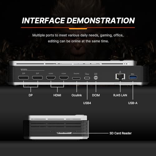 BOSGAME eGPU Features up to 4TB SSD expansion (M.2 2280 PCIe 3.0), RJ45 ethernet port, and two USB-A 3.2 ports. Video output includes 2x HDMI 2.1 (4k60Hz) and 2x DP 2.0 (4k120Hz), and supports 4 displays setup.