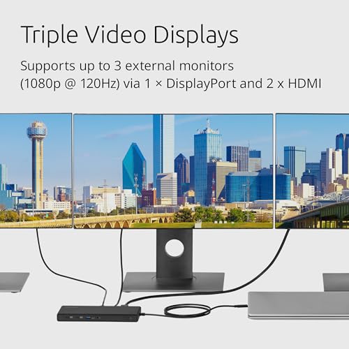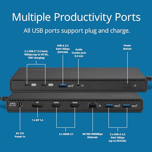 Kensington SD4842P 10 in 1 USB-C Triple Video HD (1080p @ 120Hz) Docking Station, Up to 100W Power Delivery, 5 x Plug and Charge USB Ports, Made From 70% Post-Consumer Recycled Content (K32810EU)