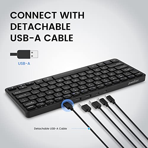 Perixx PERIBOARD-416 Wired Mini USB Keyboard with 4 Hubs – Scissor Keys – Big Print Keys – Detachable USB-A Cable – UK English