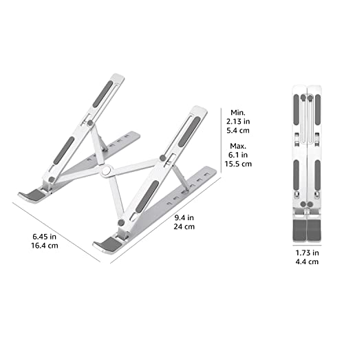 Amazon Basics Laptop Stand with 6-Angle Adjustment, For Laptops 10 (25.4 cm) – 15.6 Inches (39.6 cm), Silver
