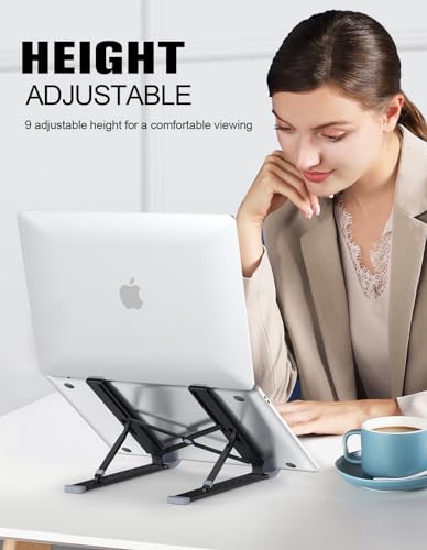 Babacom Laptop Stand, Aluminum Portable Laptop Cooling Desk Holder, 9-Levels Adjustable Notebook Riser Mount, Ventilated Computer Stand, Compatible with MacBook Pro Air, iPad,10-15.6” Laptops