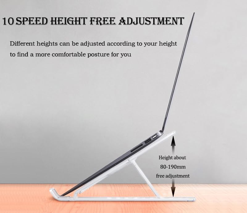 Fit4Less Foldable Laptop Stand, adjustable Height,Ergonomic Computer Stand, astic white color for Various Laptops no more than 16” (Plastic 10 Knots lift)