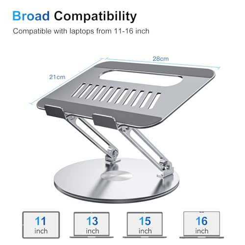 Laptop Stand for Desk with 360° Swivel Base, Multi-Angle Adjustable Laptop Riser for Work, Foldable & Portable Laptop Holder Mount for MacBook Air/Pro, Dell, HP, Lenovo, Notebooks Computer (10”-16”)