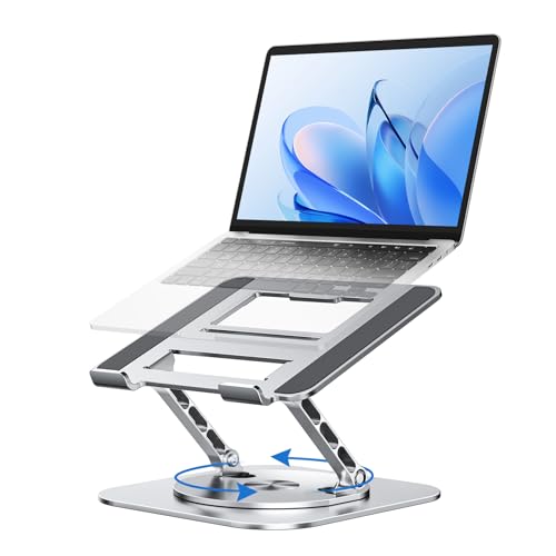 MCHOSE Laptop Stand for Desk, Ergonomic Adjustable Laptop Stand with 360° Rotation, Ventilated Aluminum Riser, Foldable Laptop Holder Compatible with MacBook Air, Dell XPS, 10-17.3″ Laptops, Silver