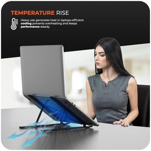 Roe Tenpo Adjustable Laptop Stand for Desk, 6-Angle Laptop Riser, Portable Tablet Stand, Foldable and Ventilated Cooling, Compatible with MacBook Pro, Hp, Asus, Lenovo 10-15.6″ (Black)