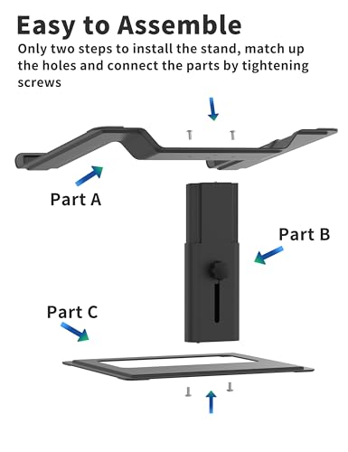 Protective and Easy Installation – The silicone pads on the surface keep your laptop stay in place and protect your device from scratches. BTW, it just need two steps that you can install the stand, match up the holes and connect the parts by tightening screws.