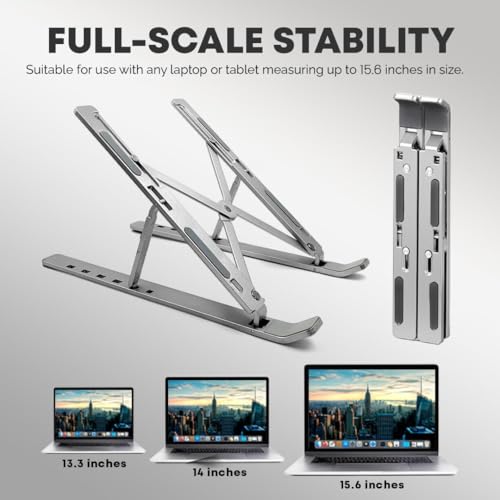 Stick Well Laptop Stand for Desk, Adjustable Aluminum Laptop Riser for Desk & Bed, Air-Ventilated Portable Laptop Stand, Compatible with MacBook, Dell, HP, and 10-15.6”