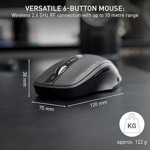 CHERRY MW 2310 2.0, Wireless 6-Button Mouse, 2.4 GHz RF with 10 m Range, Optical Sensor & DPI Switch, Nano USB Receiver, Ambidextrous, Black