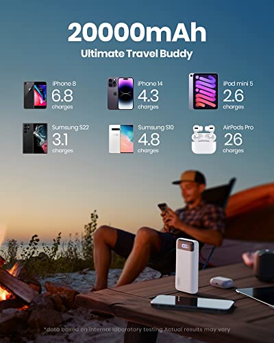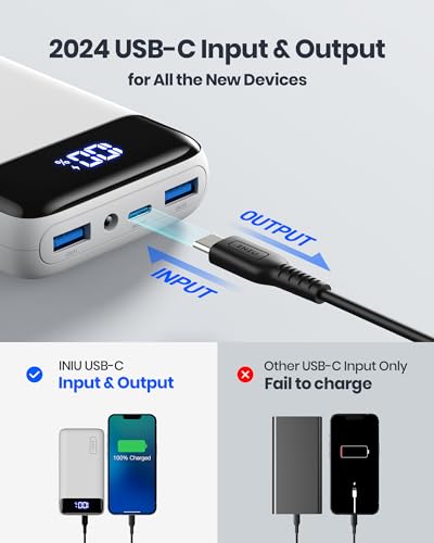 INIU Power Bank, 22.5W PD3.0 QC4.0 Fast Charging LED Display 20000mAh Portable Charger, 3A Outputs Flashlight Phone Battery Pack Compatible with iPhone 16 15 14 13 12 Samsung Xiaomi etc