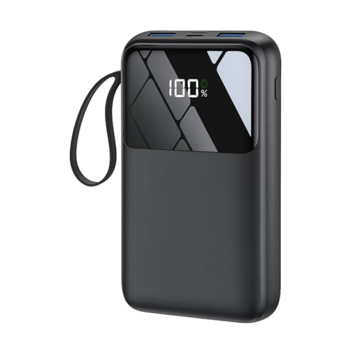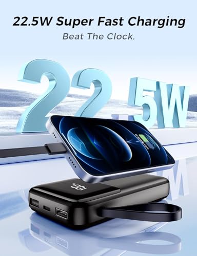 All-in-One Portable Charger: Built-in USB-A, USB-C, Micro-USB & Lightning cables. Works with iPhone, Samsung, Pixel, iPad, earbuds & smartwatches. No extra cords, perfect for travel & daily use.