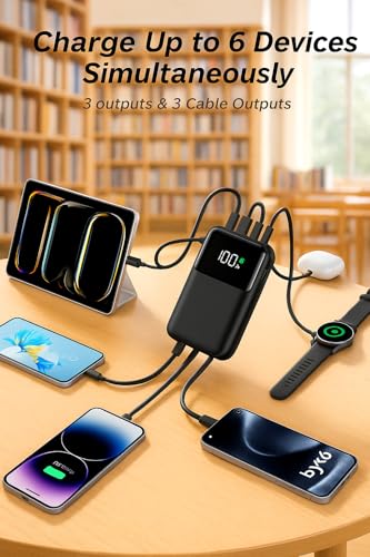 Charge 6 Devices at Once: Features 6 outputs & 2 inputs. Upgraded Type-C port supports fast input/output, charging multiple devices simultaneously. Efficient, flexible, and convenient on-the-go charging.