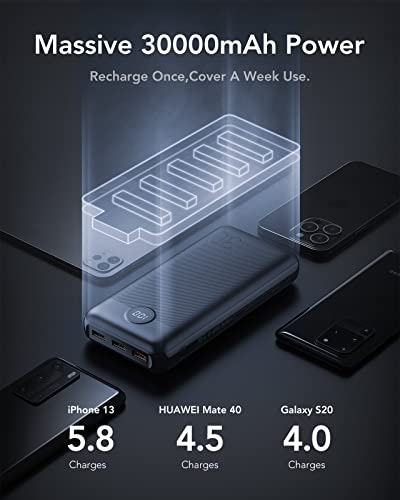 【Massive 30000mAh Capacity PowerBank】At a total 30000mAh, it can fully charge an iPhone 8-14 series 5-8 times, for Samsung Galaxy series 4-6 times and an iPad Air 2 times,The 30000mAh power bank meets 5-7 days of battery life, suitable for travel, business trips or other outdoor activities.
