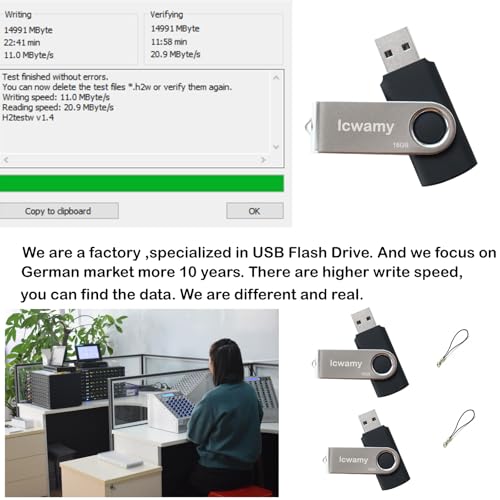 16GB USB Flash Drives 2 Pack: Read speed:20MB/s ;Write speed:10MB/s, with a better MLC flash chip, passed H2 software test.