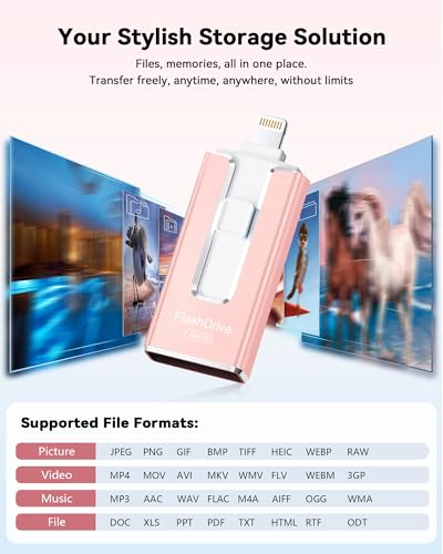 SUDEHO USB Stick 256GB for iPhone, MFi Certified USB-C & Lightning Memory Stick, 3-in-1 USB 3.0 Flash Drive for iPhone/iPad/Android/PC, High-Speed Photo & Video Backup, Easy File Storage, Pink