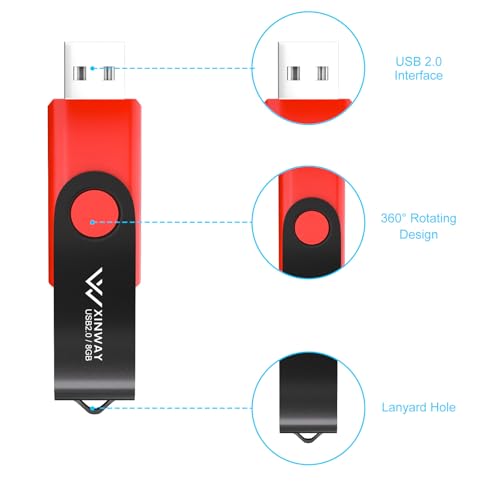 XinwaY USB Flash Drive 8GB Memory Stick Thumb Drive Swivel Design Jump Drive, (2 Pack 8GB – Red Purple)