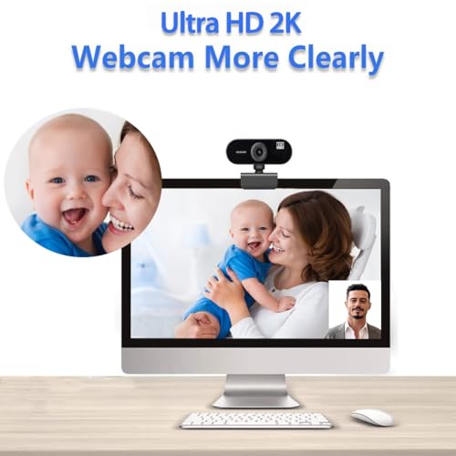 【Wide Applications & Universal Compatibility】 The laptop camera works seamlessly with Skype, Zoom, FaceTime, Hangouts, and is compatible with PC, Mac, Laptop, MacBook, Tablet, etc. This webcam operates in 2K ultra HD video at 30 fps, delivering crystal-clear images whether you’re on a video call or streaming. It is suitable for multiple operating systems, including Windows 2000, XP, Vista, Win7, Win8, Win10, Mac OS, Linux, etc.