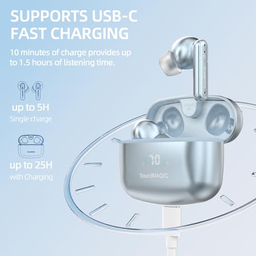 Soundmagic T80BT ANC True Wireless Earbuds with Hi-Res Audio,Hibrid Active Noise Cancelling, ENC Call Clarity, 20H Playtime, IPX5 Waterproof, Ultra-Comfy Fit for Sports/Work/Gaming (Blue)