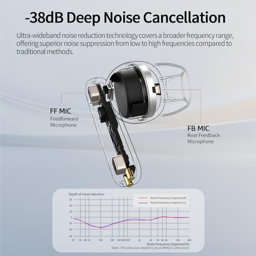【-38dB Ultra Wideband Noise Reduction】: The Shengmei T80BT ANC True Wireless Noise Reduction Bluetooth Earphones are equipped with high-performance noise reduction chips. The front and rear microphones respectively pick up environmental noise inside and outside the ear, and the noise reduction chip generates a signal to drive the speaker to produce sound waves opposite to the noise, in order to cancel out the noise waves and achieve noise reduction effect
