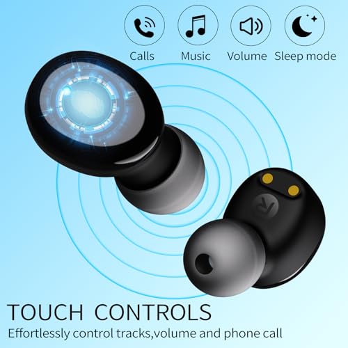 Temdan Wireless Earbuds in-Ear Headphones Bluetooth 5.3 with Built-in Mics Deep Bass Clear Call Ultralight Headsets, 60H Play Time for iPhone Android Studying Sports Gaming, Black