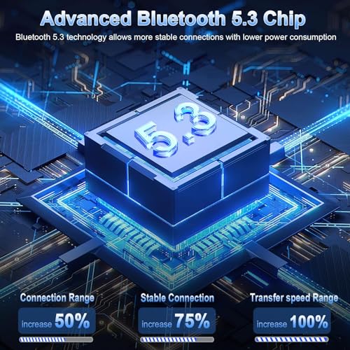 2025 Upgraded Bluetooth 5.3 and One-Step Pairing: A97 Bluetooth earphones have the most advanced Bluetooth 5.3 technology, provides faster and more stable signal transmission and successfully achieves low latency without interruption. Once open the lid of charging case, earbuds will automatically connect to the last paired device.