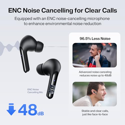 【Powerful & effective ENC noise reduction function】The built-in Mic and cutting-edge intelligent algorithm of this earphone achieve the effect of eliminating environmental noise by offsetting the noise collected from the left and right sides. Even in noisy environments you can still enjoy your own private concerts with it. Not only enjoy music, but also enjoy clear calls through ENC noise reduction technology, just like face-to-face communication with others.