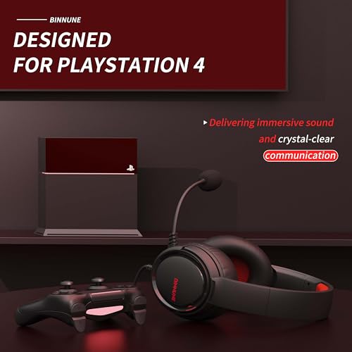 BINNUNE BG02 3.5mm Gaming Headset for PC, PS4, PS5, Laptop, Xbox One, Mac, iPad, NS Games, Computer Game Gamer Over Ear Flexible Microphone Volume Control with Mic – Red