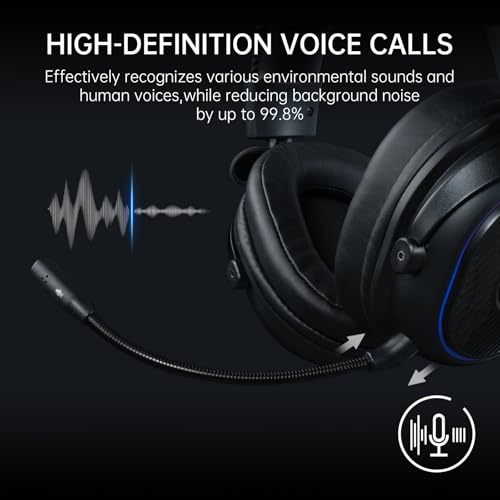 Ergonomic Comfort Design – This headset with microphone weighs only 310g for all-day wear. Protein leather-wrapped memory foam ear cushions are soft, breathable, and fully enclose your ears without pressure. The adjustable steel-reinforced headband ensures a secure fit and reduces fatigue during long gaming or work sessions.