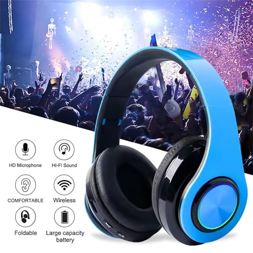 🎶【Wide Compatibility】: Simply press multi-function button 2s and the over ear headphones with mic will be in ready to pair. wireless headsets are compatible with all devices that support Bluetooth or 3.5 mm plug cables. They also feature a set of LED lights that run around the edges of the earpiece for an awesome, stylish look!