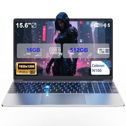 DMDFJY 15.6″ Laptop – N150 (Up to 3.6GHz) 16GB RAM, 512GB SSD, USB 3.0/HDMI Connectivity, Fingerprint Security, WiFi 5 & Bluetooth 4.2, Laptops PC RGB Illuminated Keyboard
