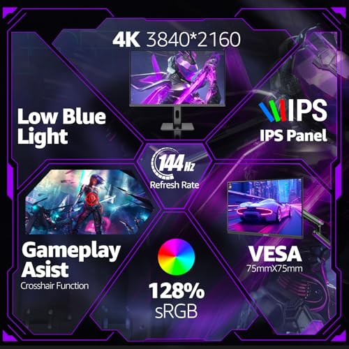 27 inch 4K Gaming Monitor, UHD 3840 x 2160p 144HZ PC Computer Monitors IPS Screen for Home & Office, Support HDMI 2.1, DP 1.4