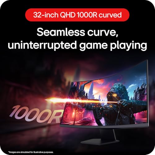 LG UltraGear Curved Gaming Monitor 32GS60QC, 32 inch, 1440p, 180Hz, 1ms Response Time, VA Panel, AMD FreeSync, Smart Energy Saving, DisplayPort, HDMI