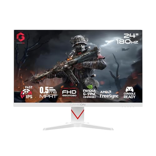 GAMEON Marksman Series 24” Fast IPS Gaming Monitor – FHD 1920×1080, 180Hz Overclocked, 0.5ms MPRT, HDR400, FreeSync G-Sync Compatible, HDMI 2.1 & DP 1.4, Console compatible, GOAM24FHD180IPS – White