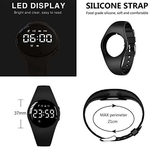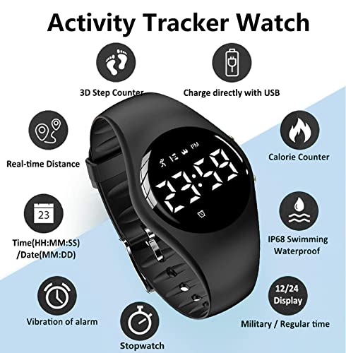 ⌚【Fitness Tracker Watch】Designed for kids adults fitness tracker to track it intelligently, display time/date, pedometer steps, real-time distance, calories, vibration alarm clock etc. With digital LED display, bright and clear, easy to read.