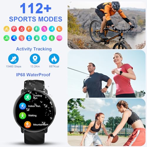 Smart Watches for Men Women, 1.39″ HD Touch Screen Smartwatch with Bluetooth Calls and Dialing Function, 112+ Sports Modes Fitness Tracker with USB-C Fast Charging, Smartwatch for Android iOS. Black
