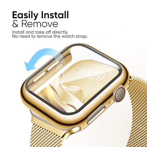 Raradev 3-in-1 Compatible with Apple Watch Metal Straps 40mm with Case & Screen Protector, Dual Magnetic Band and Protective Cover with 9H Tempered Glass for iWatch SE Series 6/5/4, Gold