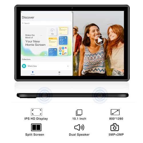 【5060 mAh Battery】Tablets 10 inch android with 5060mAh large battery can easily work or play for a whole day! It can stand by for more than 255 hours. The Andriod tablet is equipped with a separate Type-c+3.5 mm headphone jack. It supports wireless screen casting and easily connects to a large TV.