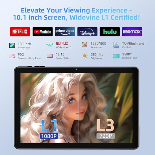 【Android 14 Tablet, 128GB ROM】2025 The new 10.1-inch high-capacity Android 14 Tablet K50 features 10GB RAM (4GB RAM + 6GB Expanded), and 128GB ROM lets you store even more photos and documents. micro SD card slot expands the storage capacity up to 1TB, so you can store your favourite media files together, including eBooks, videos, photos.